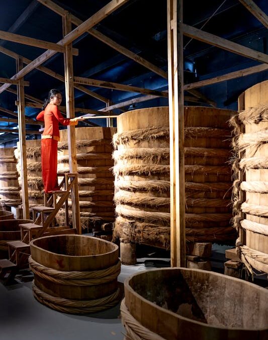 Photo : femme remplissant les fûts en bois remplis d’anchois à Phu Quoc